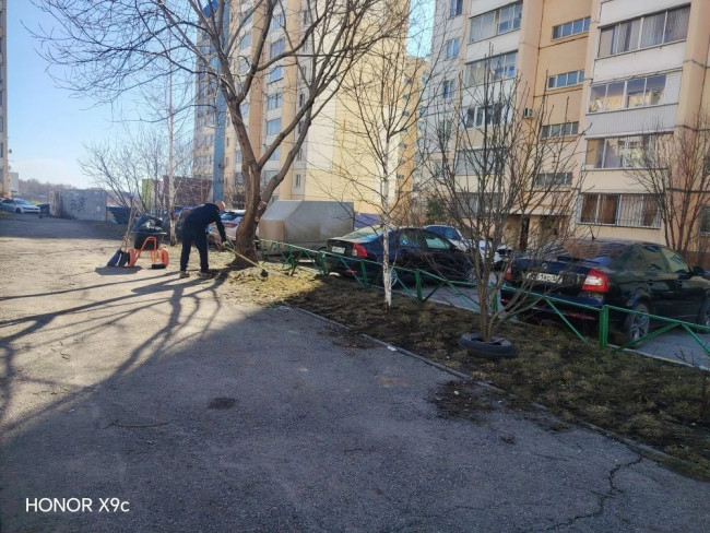 Делимся фотографиями, сделанными во время субботника по адресу: пр. Карла Маркса, 220/1.